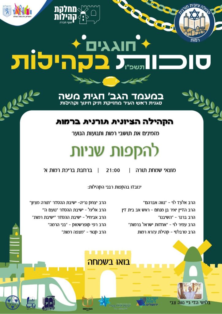פרטים על אירועי שמחת תורה קהילתיים בבית הכנסת יישלחו בהקדם.