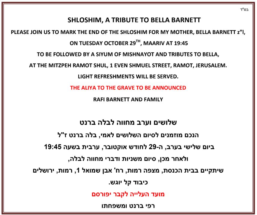 The Ramot community has been asked to make Shabbat food for 80 lone soldiers this coming 1 November. The food will be collected locally and then brought to the Lone Soldier Center for their Shabbat meal. To help make this a success please sign up here: Lone Soldiers Meal Signup or contact Dassie Corman 0526278193