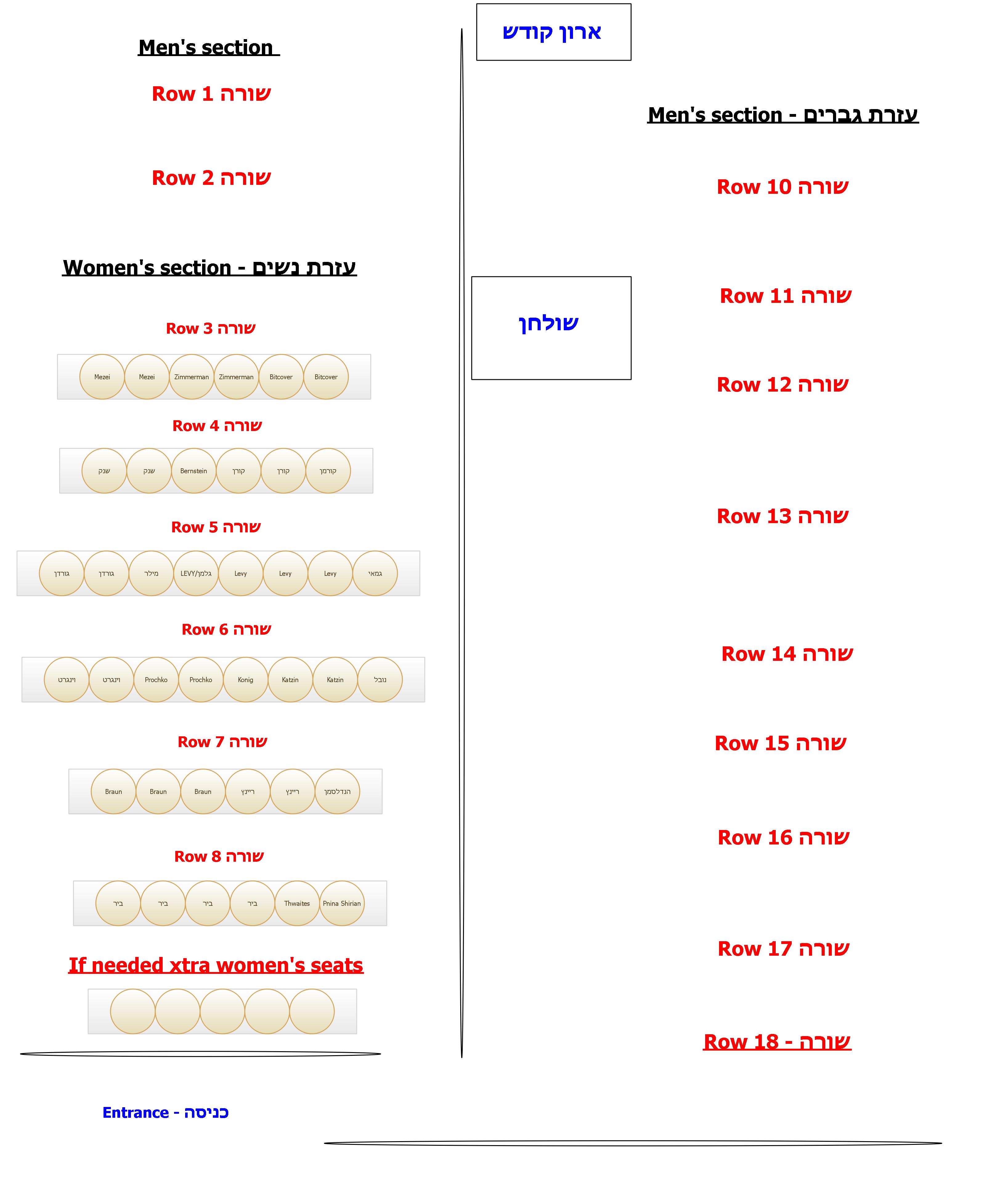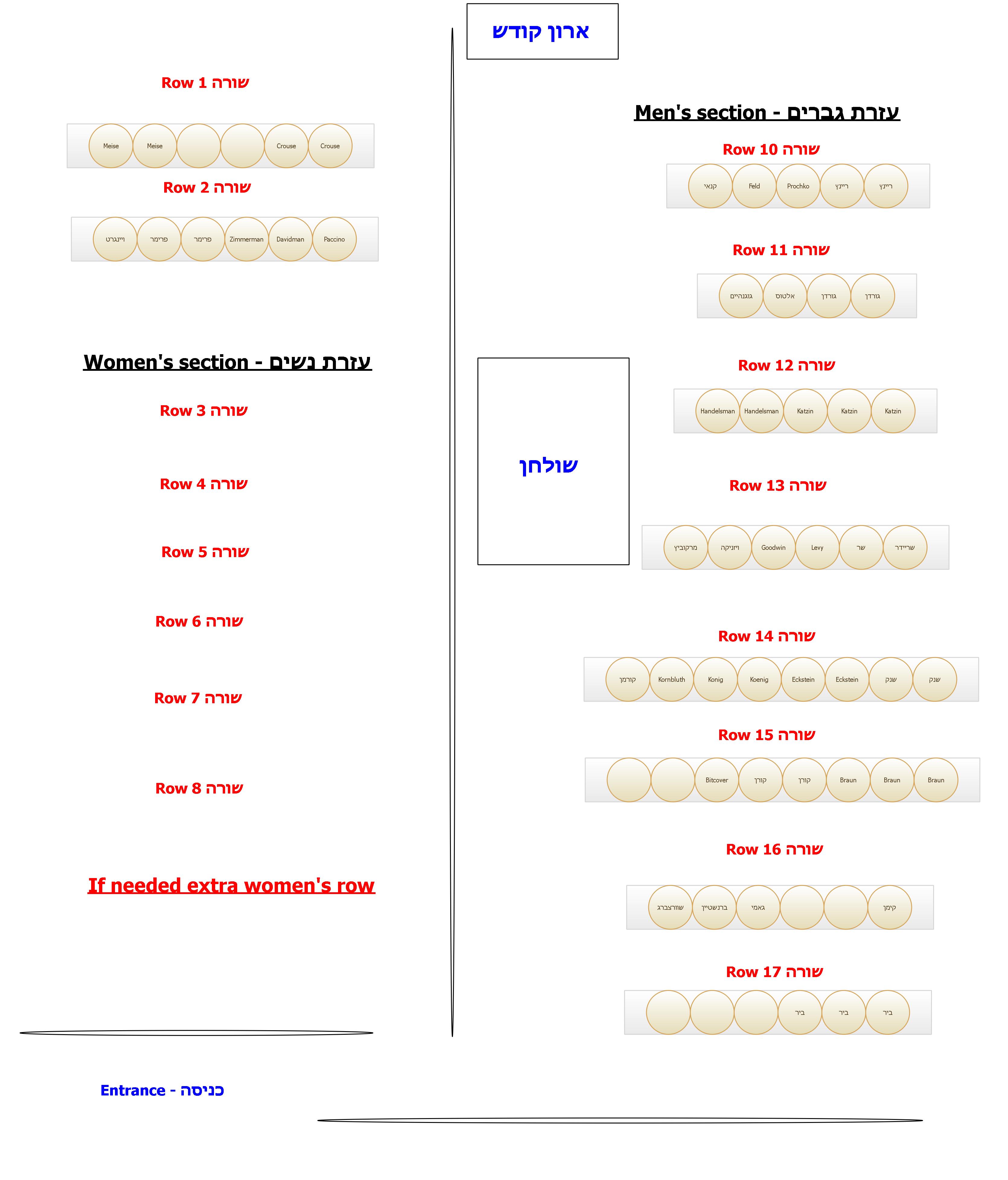 Here are the seating plans for Yom Kippur. These plans are final and no changed can be made.