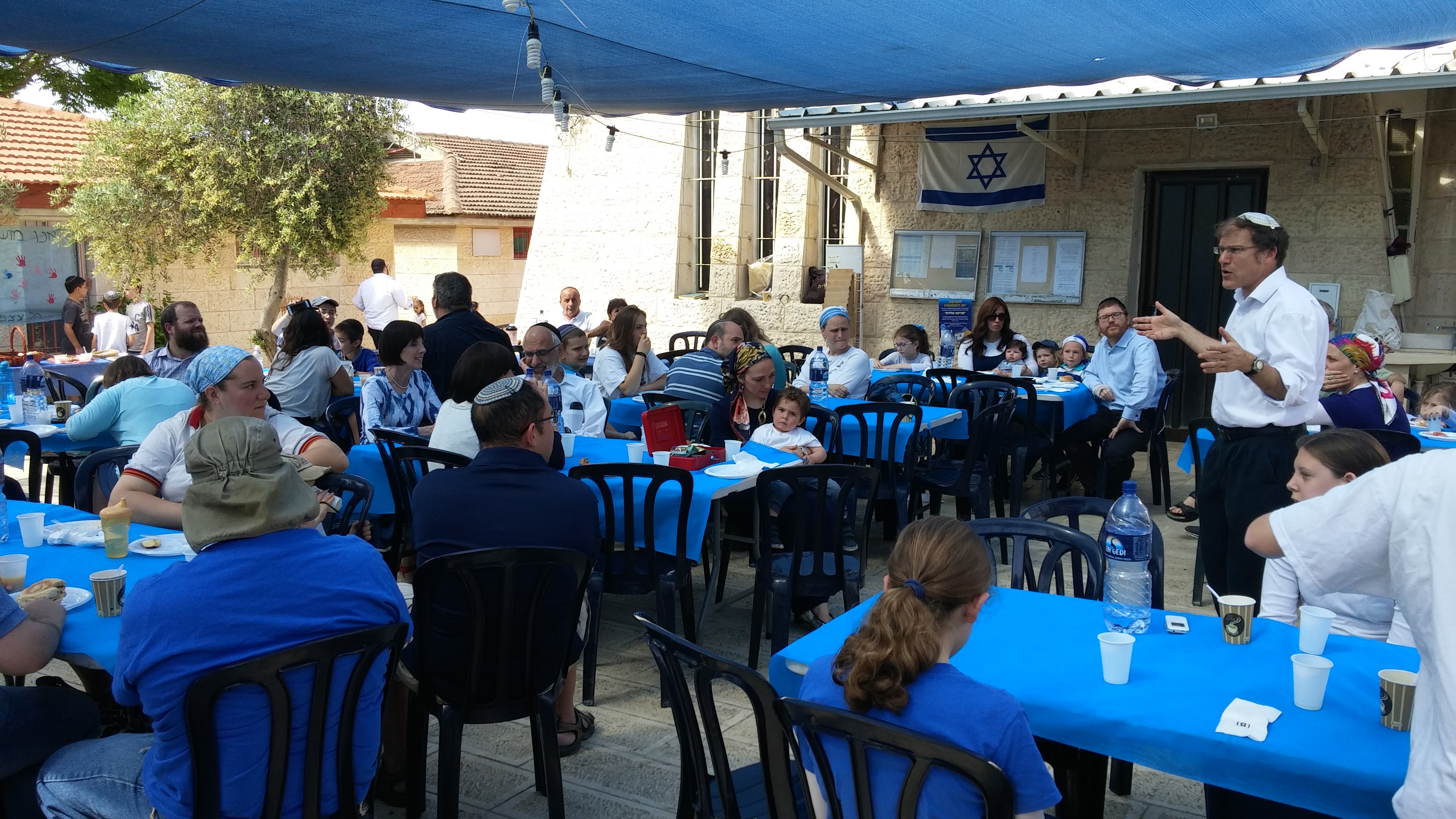 לאחר המניין השלישי בבוקר של יום העצמאות, למעלה ממאה מבוגרים וילדים נהנו מארוחת בוקר חגיגית וטעימה, הודות לארגון ולביצוע של שרה גורדון ומנחם הנדלסמן.
