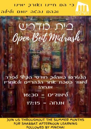All are invited to come learn this Shabbat at Hashiveinu at 16:30 followed by Mincha at 17:15.
