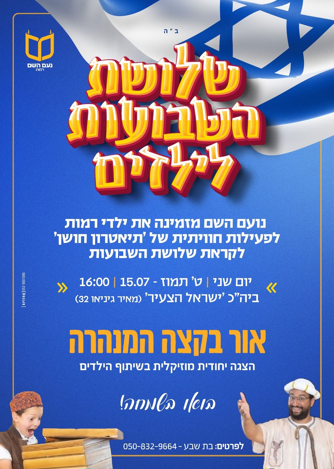 Yeshivat Noam Hashem invites the children of Ramot to a theatre activity in advance of “the three weeks”.