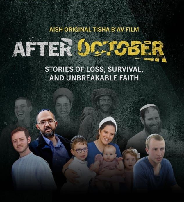 On Tisha b’Av afternoon, we will be screening the movie “After October“, suitable for adults and youth over the age of 14. The screening will start at 2:30pm