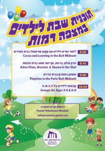 Join us on Shabbat morning after the 9:00 minyan, (around 11am) for a kiddusha rabba to welcome everyone who has recently moved into our community, including Ariella and David Braun, Michal and Akiva Crouse, Jenny and David Eckstein, Rachel and Yisrael Feld, Rebecca and David Kornbluth, Liora and Josh Liggett, Tziona and Reuven Margrett, Rochelle and Zev Meiseles, Rachel and Amiel Meiseles, Daniel Negbi, Jacob Sager, and Sara and Shlomo Samowitz.
