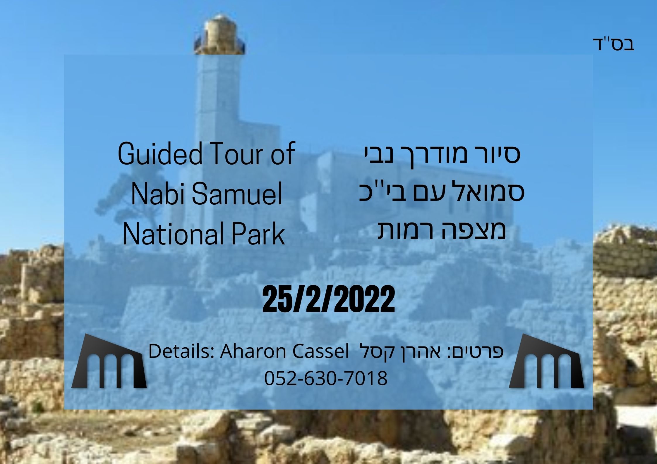 הנכם מוזמנים להשתתף בסיור מודרך של כשעה וחצי בגן הלאומי נבי סמואל ביום שישי ה-25 בפברואר בשעה 10:00 בהדרכת אהרן קסל, מדריך רשמי בנבי סמואל.