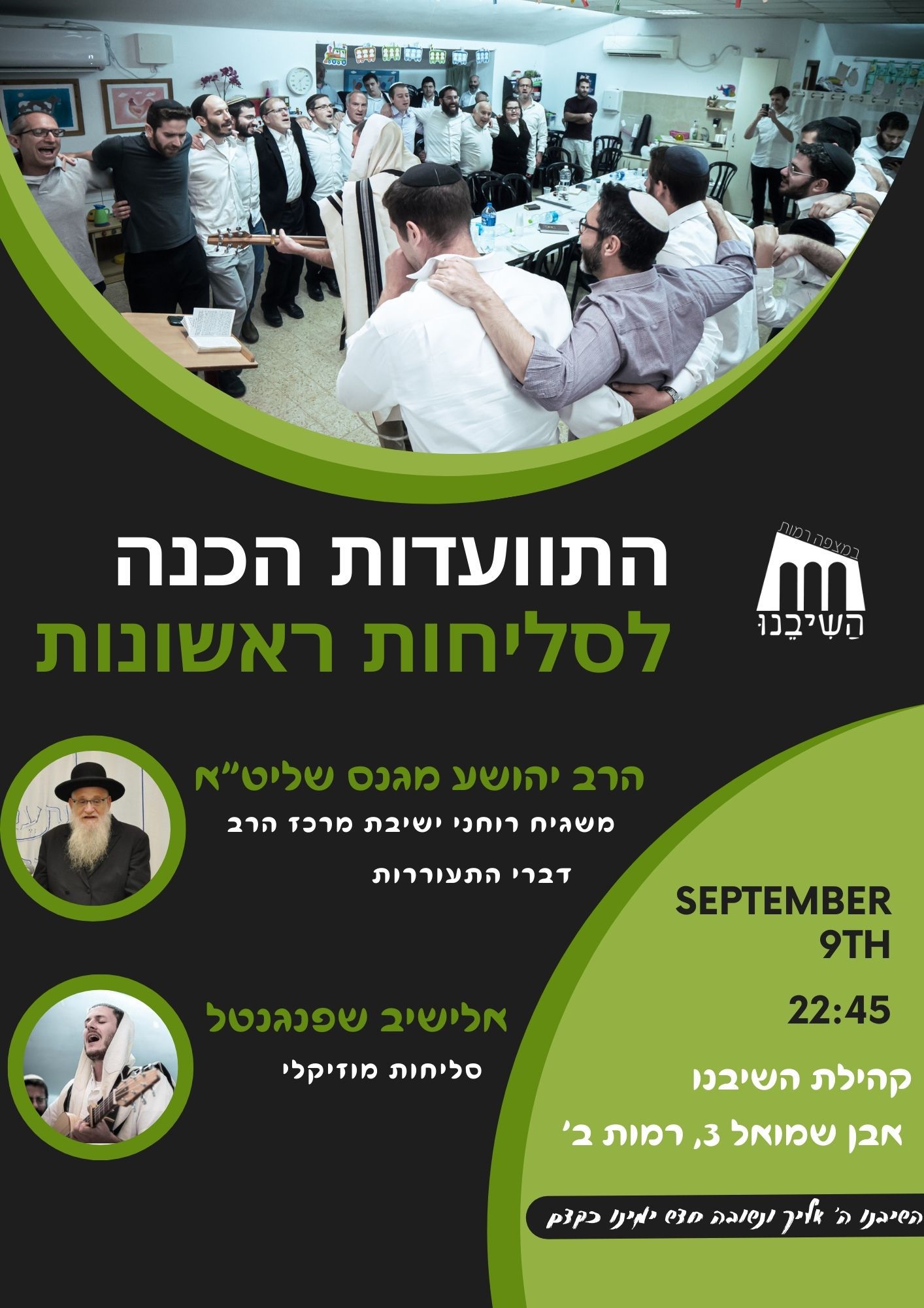 מתחילים סליחות במוצ”ש. יהיה סליחות מוזיקליות של השיבנו בשעה 22:45, וסליחות לא-מוזיקליות בבית הכנסת הראשי בשעה 00:36.