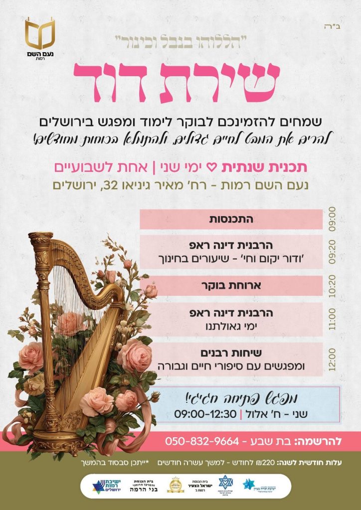 Rav Avichail will deliver divrei Torah on Friday night, and Daniel Hatamov will deliver divrei Torah on Shabbat morning.
