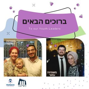 We would like to welcome the two youth director couples to our Kehilla. Neriah and Sapir Lapidot (and their daughter Shira) as well as Maor and Leticia Azar have just moved to Ramot and we look forward to the great programming they will be offering our children.