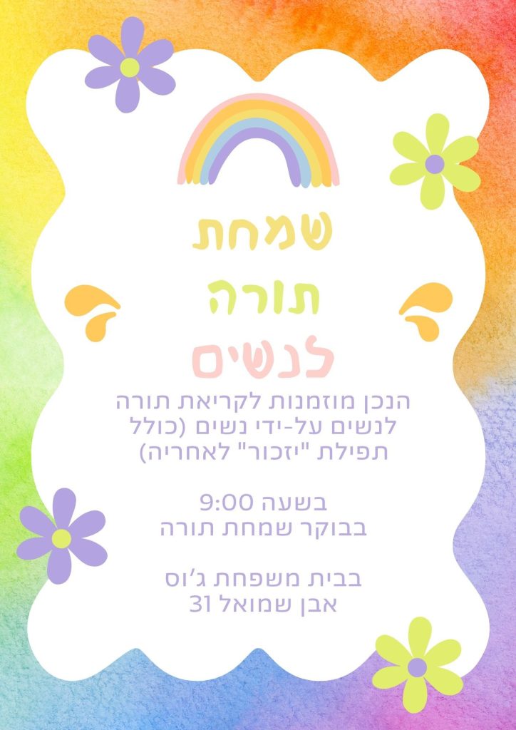 נשים מוזמנות להצטרף ולחגוג את שמחת תורה בקריאת תורה לנשים שתציין בכבוד גם את מורכבות החג השנה. הקריאה תתקיים בשמחת תורה בבוקר בבית משפחת ג’וס, אבן שמואל 31 בשעה 9:00.